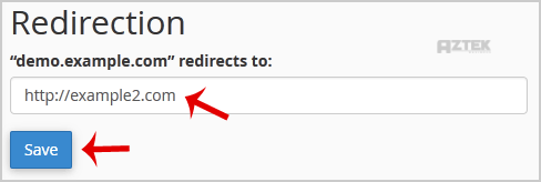 5. Under the "Subdomain Redirection" option you should enter the link to which you want to redirect the subdomain in the available text box.
