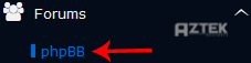 4. On the left side of your screen you should locate the "Forums" category. Click on it and then click on the "phpBB" link that will appear.
