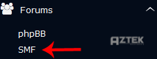 4. On the left side of your screen you should locate the "Forums" category. Click on it and then click on the "SMF" link that will appear.