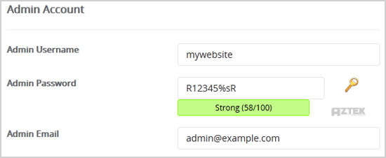 • Admin Username: Your new b2evolution username (for security reason do not use the "Administrator" or the "Admin" username.)