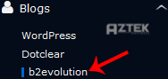 4.  On the left side of your screen you should locate the "Blogs" category. Click on it and then click on the "b2evolution" link that will appear.