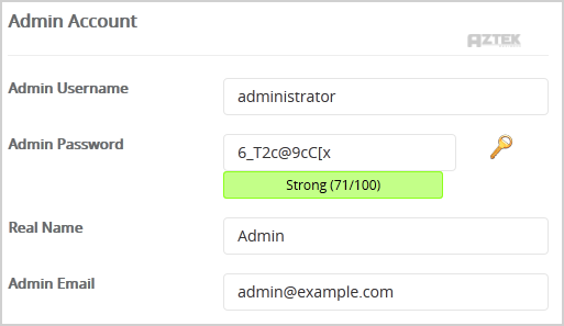 Admin Username: Your new Pixie username (for security reason do not use the "Administrator" or the "Admin" username.)