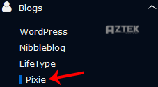 4. On the left side of your screen you should locate the "Blogs" category. Click on it and then click on the "Pixie" link that will appear.