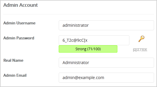 • Admin Username: Your new Nucleus username (for security reason do not use the "Administrator" or the "Admin" username.)