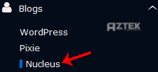 4.  On the left side of your screen you should locate the "Blogs" category. Click on it and then click on the "Nucleus" link that will appear.