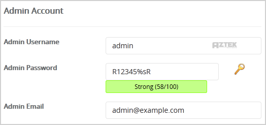 8. Under the "Admin Account" field enter the following information: