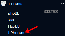 4. On the left side of your screen you should locate the "Forums" category. Click on it and then click on the "Phorum" link that will appear.