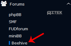 4. On the left side of your screen you should locate the "Forums" category. Click on it and then click on the "Beehive" link that will appear.