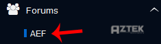 5. On the left side of your screen you should locate the "Forums" category. Click on it and then click on the "AEF" link that will appear.
