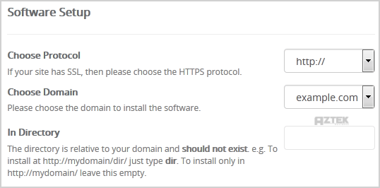 In Directory: If you want to install this in a directory, for example example.com/forum, enter the directory name. Otherwise, leave this blank to install in your main domain example.com