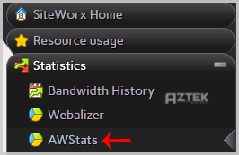 2. Under "SiteWorx Menu", click the "Statistics" menu item if it is not already open.