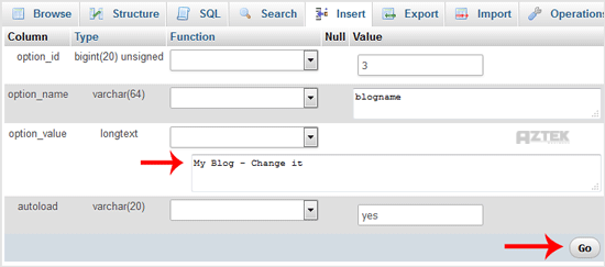 7. Edit "My Blog" to different text and then click on "Go" button.
