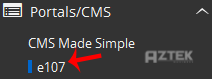 4. On the left side of your screen you should locate the "Portal/CMS" category. Click on it and then click on the "e107" link that will appear.