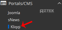 4. On the left side of your screen you should locate the "Portal/CMS" category. Click on it and then click on the "Kliqqi" link that will appear.