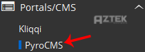 4. On the left side of your screen you should locate the "Portal/CMS" category. Click on it and then click on the "PyroCMS" link that will appear.