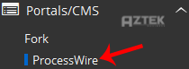 4. On the left side of your screen you should locate the "Portal/CMS" category. Click on it and then click on the "ProcessWire" link that will appear.
