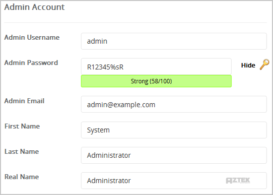 Admin Email: Your e-mail address. - First Name: Enter your first name