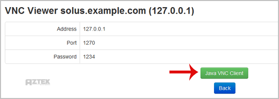 4. The new VNC page will open. Click on "Java VNC Client" or on "VNC".