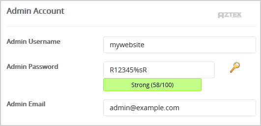 7. Under the "Admin Account" field enter the following information: