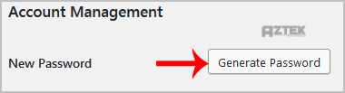 3. Scroll down and under Account Management you can see the "New Password" option. Click on the "Generate Password" button.