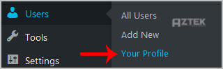 2. Under the dashboard menu, hover your mouse over "Users" and then click on "Your Profile".