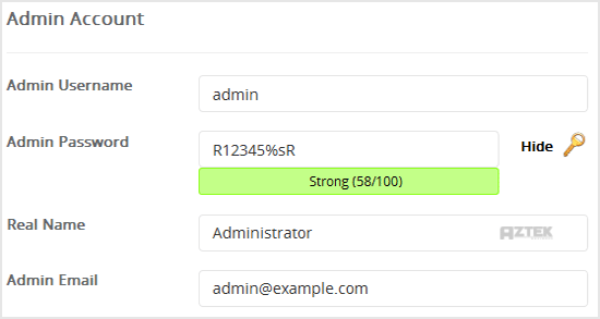- Admin Username: Your new Saurus username (for security reason do not use the "Administrator" or the "Admin" username.)