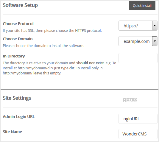 • Site Name: Enter the name of your website, such as "WonderCMS".